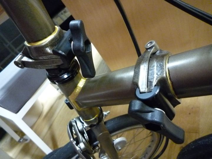 加茂屋さんのフィンガークランプの色比べ。ゴールドなのか?黒なのか?Brompton RAWカラーではどっちが似合う?の巻