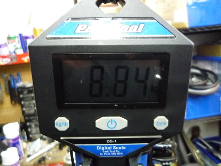 ブロちゃんこと、M6Lのノーマルが11.8kg。現在は10段変速にしたりその他足したり引いたりで11.6kg位あります。一方ブロくんこと、S2L-Xはノーマル状態で9.8kg。その後9.28kg時代が長が〜く続き、前回計測で8.88kg。今回で8.84kg達成!使い勝手をそのままに、見た目をあまり変えたくない場合は、そろそろ限界なのでしょうか?