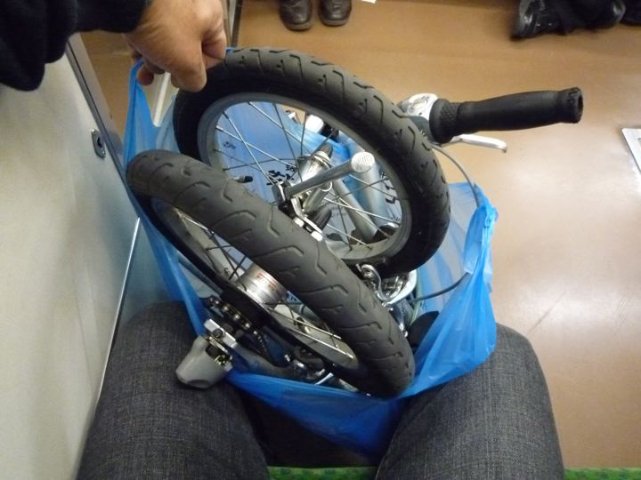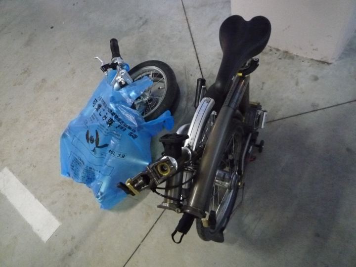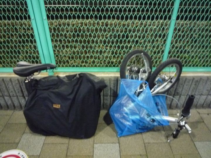 ゴミ袋輪行し地元駅に到着。