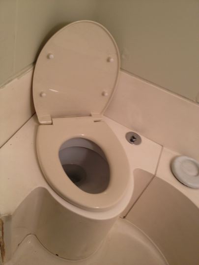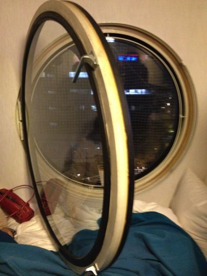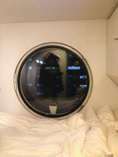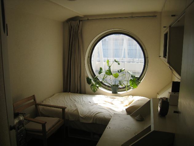 トラブル8。台風の強風でどっかの丸窓が落下する。この時はたまたまカプセルで寝ていた深夜に、凄まじい音がしてびっくりしました。何が起きたのか暫くはわかりませんでしたが。幸いにして人身事故にはなりませんでしたが、残念な事に、しょ〜もないネットをかぶせてしまう事に。ぬ〜
