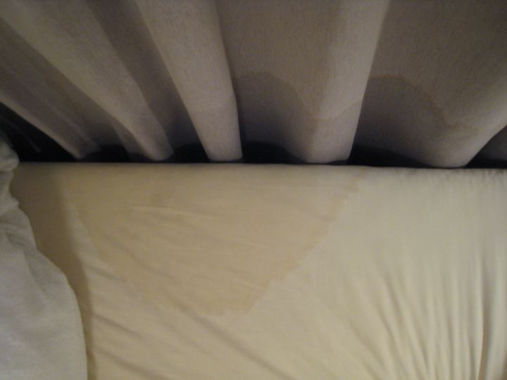 トラブル3。雨漏り(水漏れ)これにより室内の湿度はたえず90%に。除湿器フル稼働で対応。天井の穴を塞げば漏れなくなるが、内壁がカビてしまうのがいやだったので、カーテンで受けて日当りは良いので自然乾燥で対応。