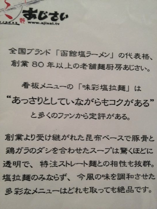 函館あじさいさんの背脂ラーメン塩に。むむぅ。本場函館の昔のあじさいさんの感動ではない。ぬ〜