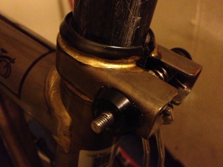 ピーターが作ってくれたBrompficationさんの軽量化したSeat Clamp Quick Releaseが・・・