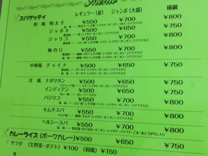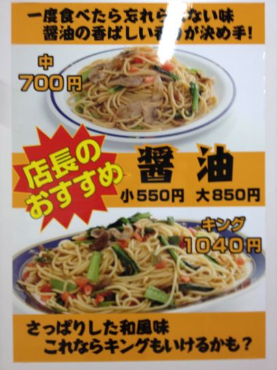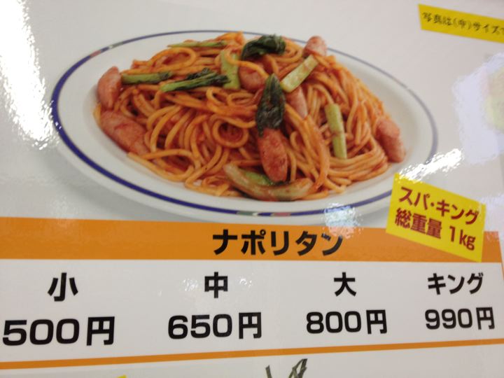 ナポリタンを食べるならレギュラーか大盛り程度に。