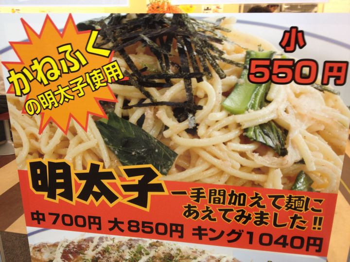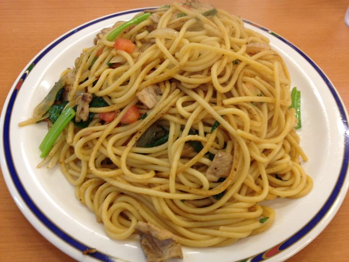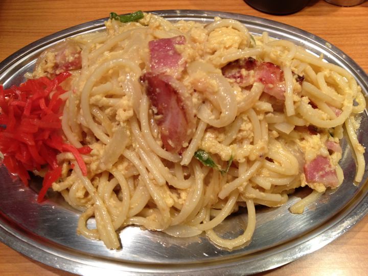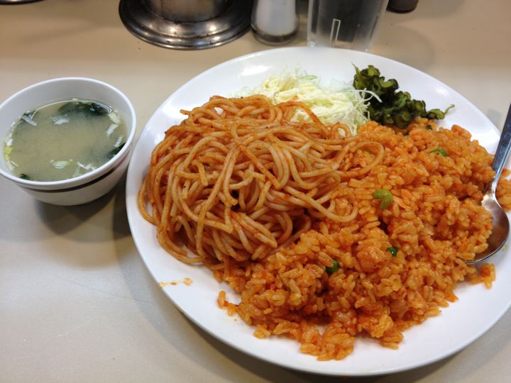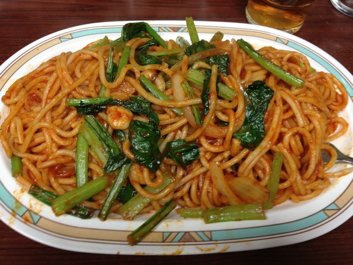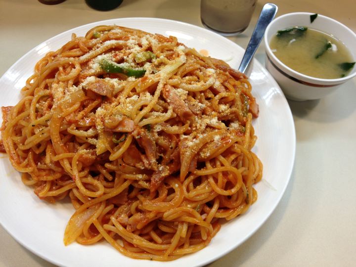 ナポリタンは比較的食べやすい。醤油か明太子がお薦め。