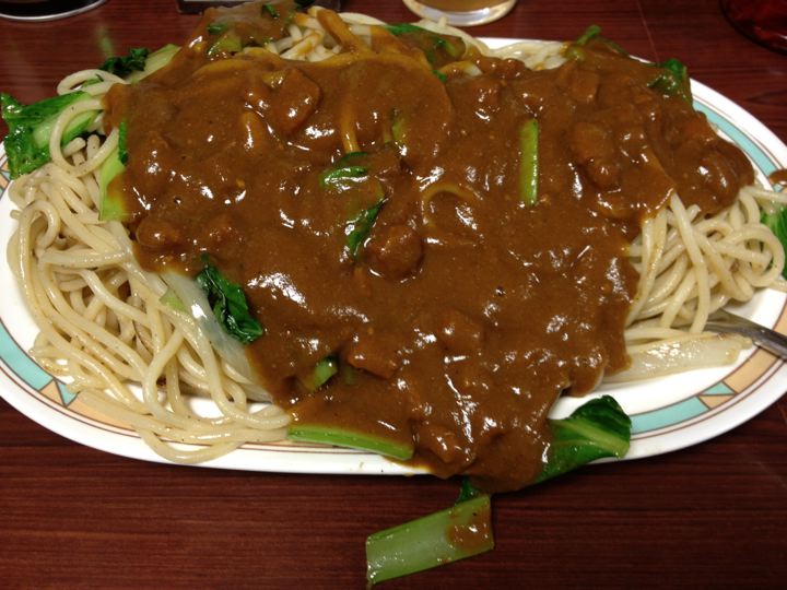 インディアン横綱。初めっからルーがお皿を飛び出してぼとぼと垂れてます。半分くらい食べるとルーがなくなるのでルーを足してくれます。