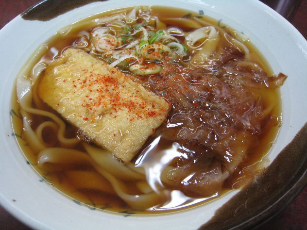 名古屋に着いたらこれですね。そうです!「きしめん」のかけ340円です。かつお節以外の味気ないのがいいんです。